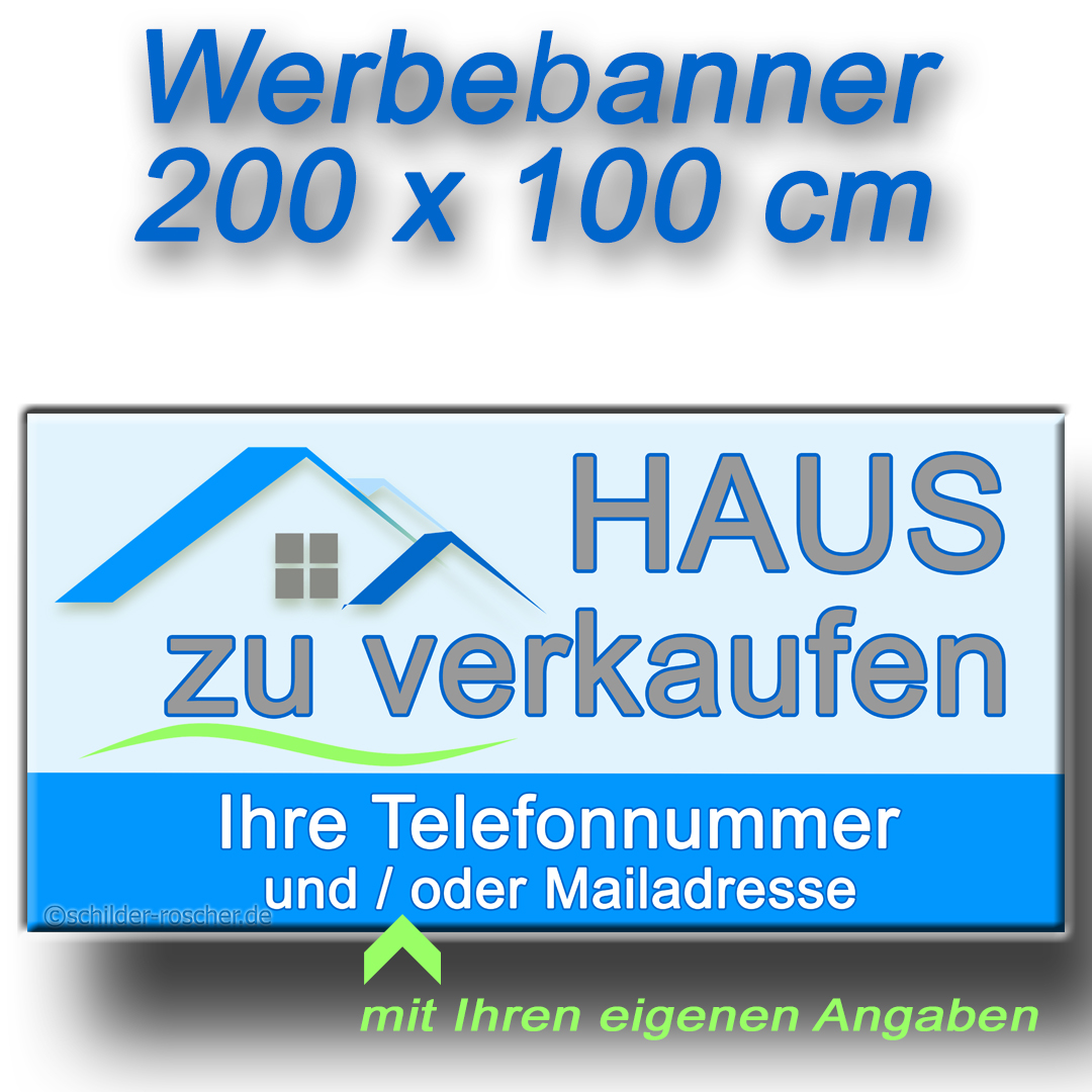 Werbebanner 200 × 100 cm – Standardmotiv | Optional individuell gestaltbar | Haus zu verkaufen