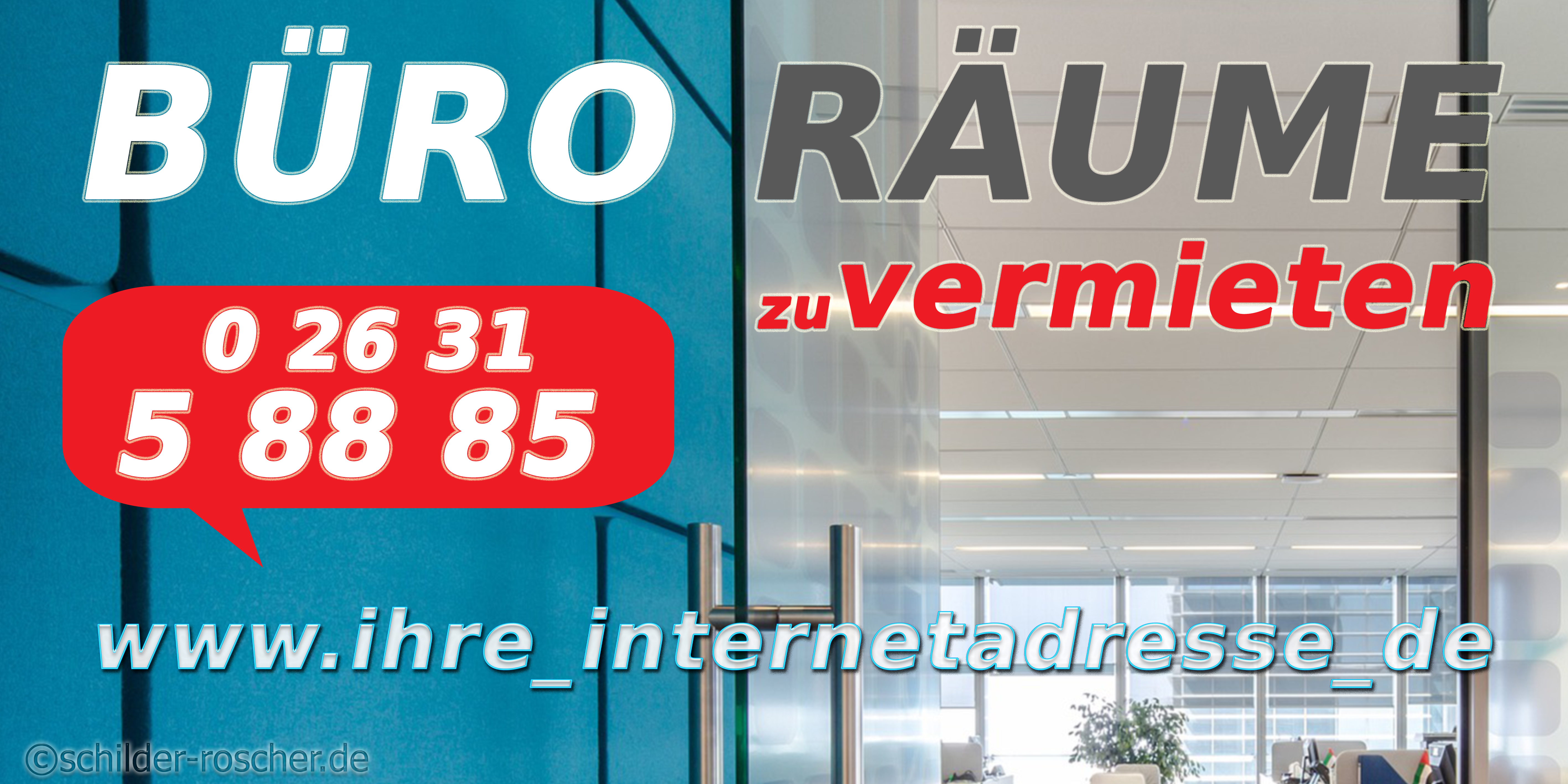Werbebanner "Büroräume zu vermieten" 200 × 100 cm – Standardmotiv | Optional individuell gestaltbar