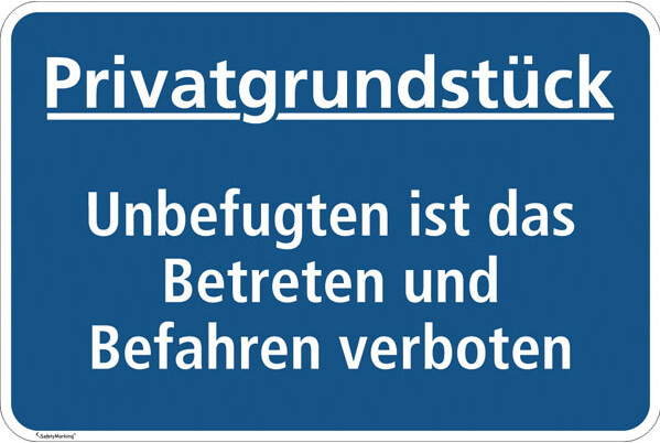 Hinweisschild Privatgrundstück – Betreten und Befahren verboten | Alu-Dibond 297 × 210 mm BLAU