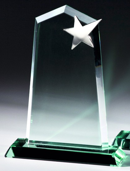 Die hochwertige Jade-Glastrophäe aus 15 mm starkem Glas und Metallstern überzeugt durch ihr elegantes Design und ihre edle Optik. Ob als Firmenauszeichnung, Sportpokal, Ehrung oder persönliches Geschenk – diese Glastrophäe setzt besondere Leistungen stilvoll in Szene.