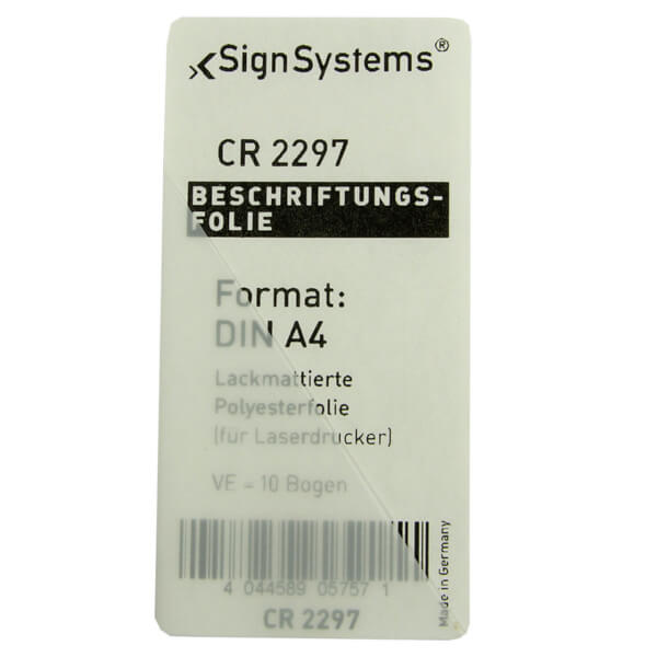 SignSystems Beschriftungsfolie aus Polyesterfolie