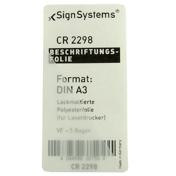 SignSystems Beschriftungsfolie aus Polyesterfolie