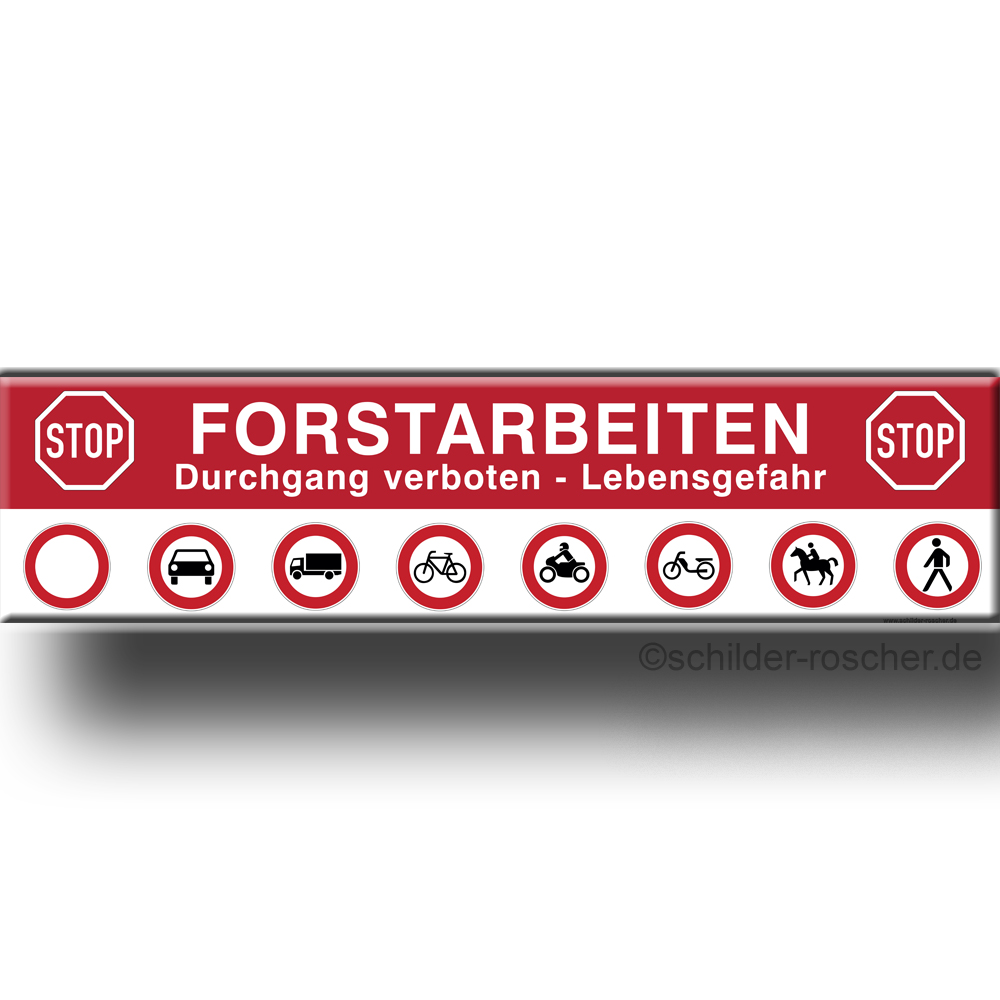 Banner / Plane mit Ösen Forstarbeiten Durchgang verboten Lebensgefahr 3000 x 750 mm