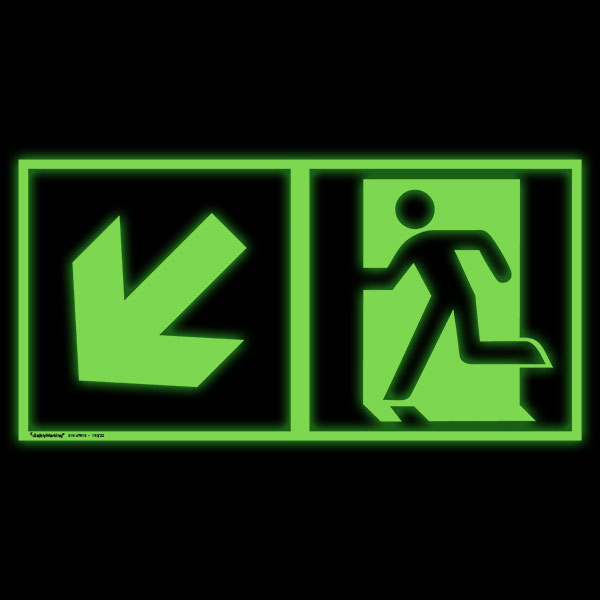 Notausgang links mit Zusatzzeichen - Richtungsangabe links abwärts