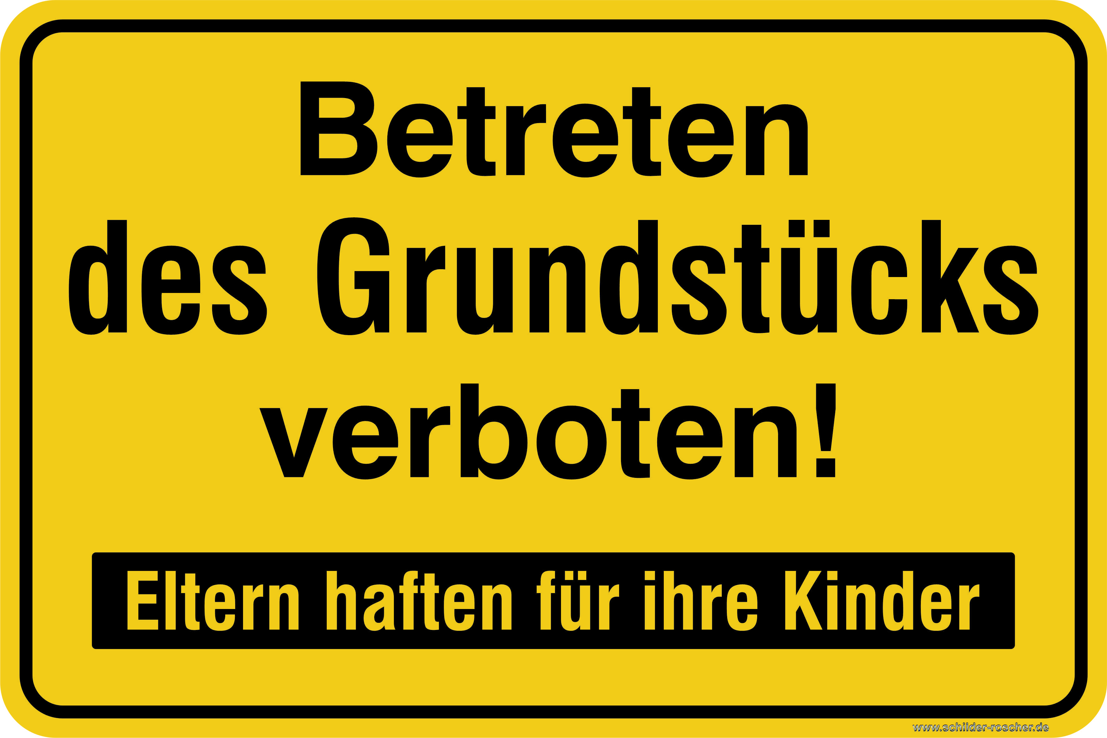 Hinweisschild - Betreten des Grundstücks verboten Eltern haften für ihre Kinder 300 x 200 mm