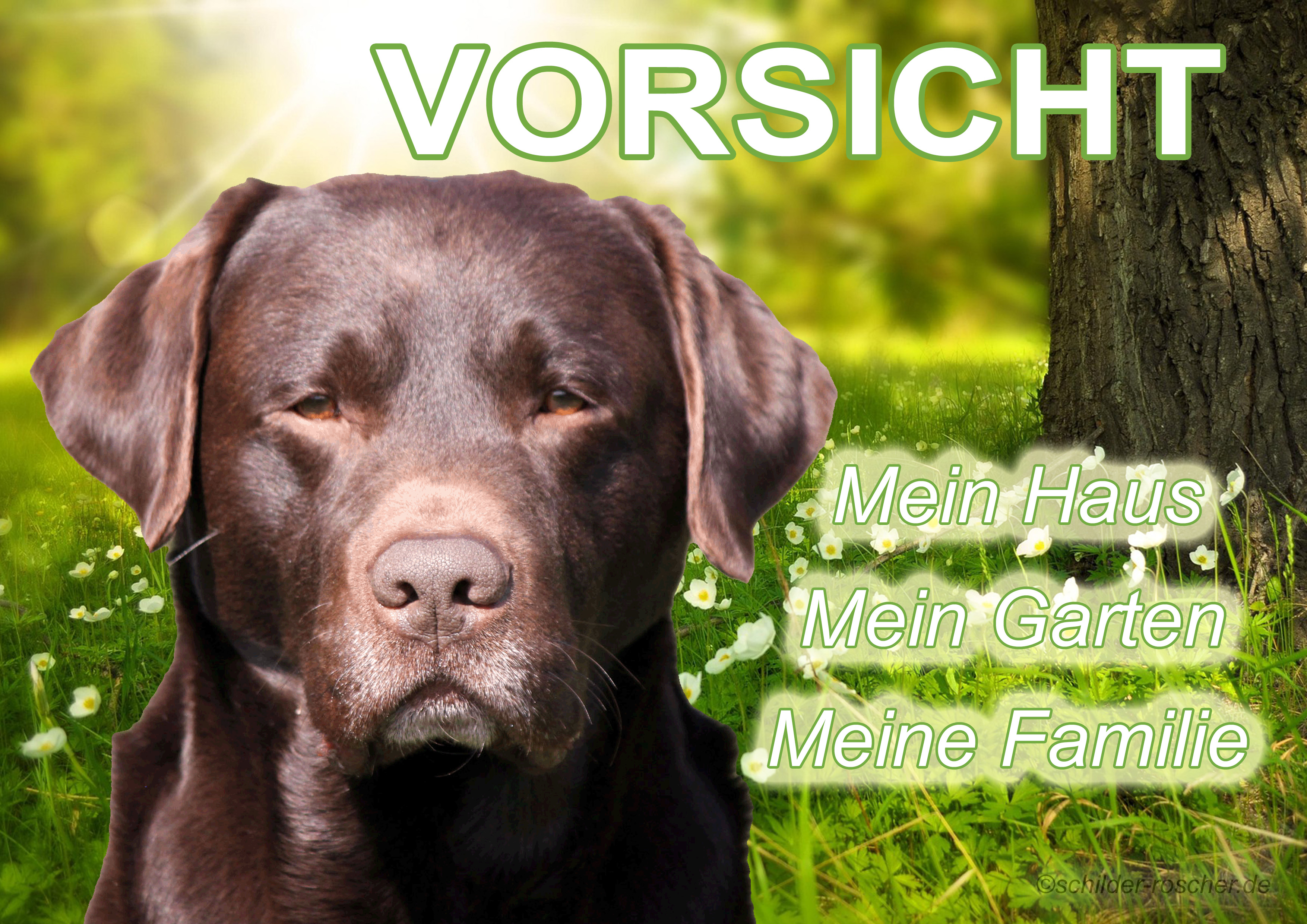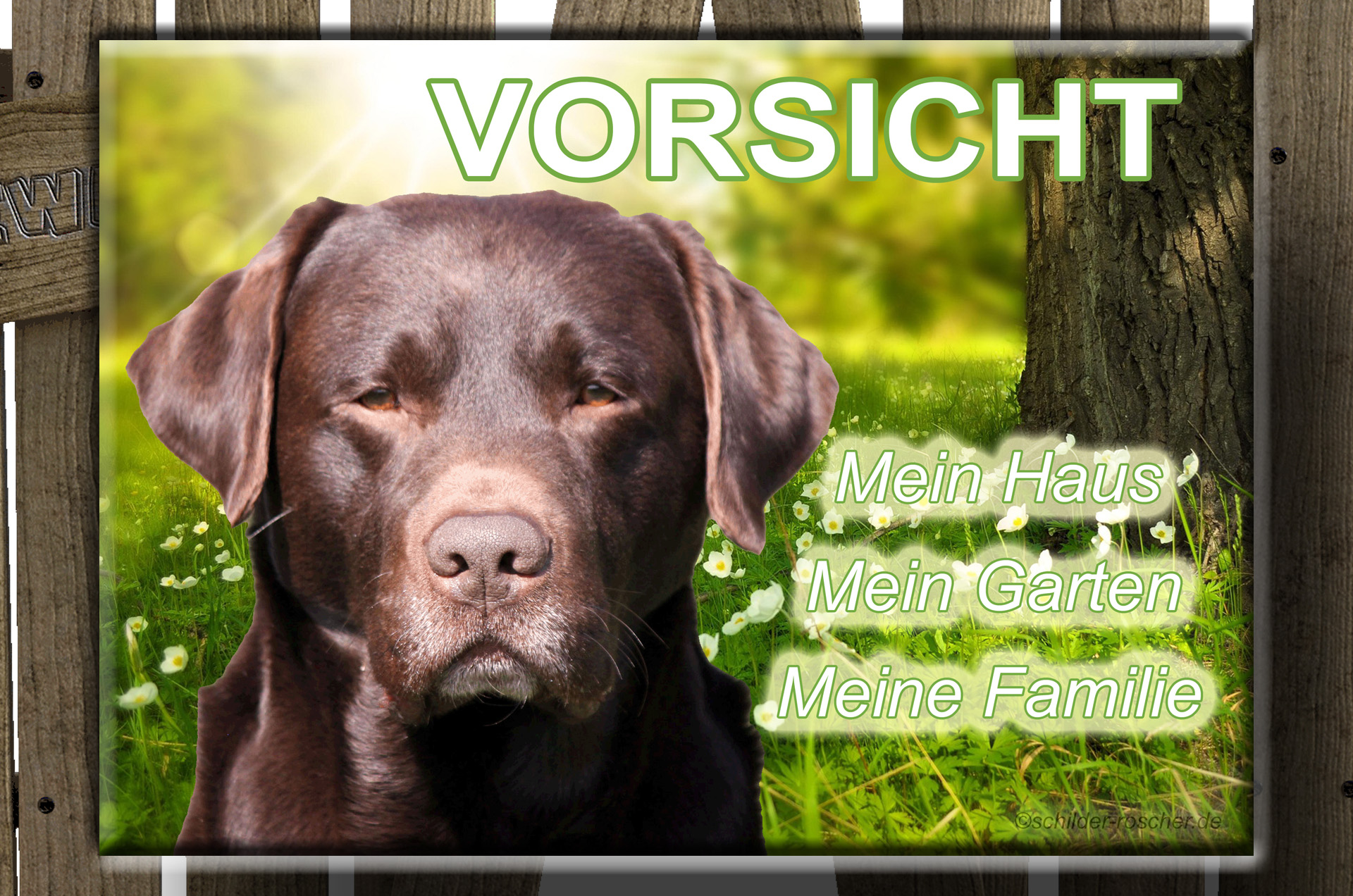 Hundeschild Labrador – „Mein Haus, Mein Garten, Meine Familie!“ | Aludibond Warn- & Spaßschild