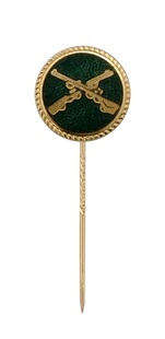 Schützen Pfänder / Abzeichen 67597-12 vergoldet - grün mit langer Nadel