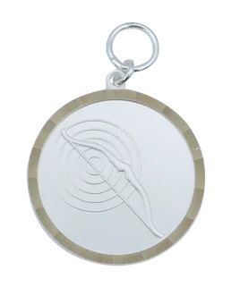 Medaille / Anhänger, Messing, BOGEN Bogenschießen massiv geprägt, mit Öse und Ring, versilbert 62326-21