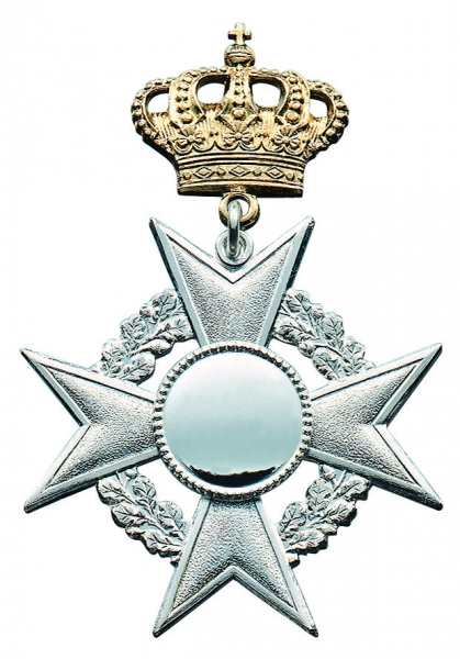 Königsorden, ca. 48 x 48 mm, Messing, massiv geprägt, versilbert, mit Öse und Ring